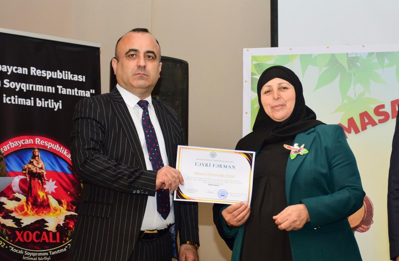 Masallı Dövlət Regional Kollecinin direktoru, Filologiya üzrə fəlsəfə doktoru Rövşən Qurbanovun çıxışı adi bir nitq deyildi, daha çox ürəklərə toxunan, düşüncələri oyadan bir çağırış idi. Rövşən müəllimin, həmçinin onun rəhbərliyi altında fəaliyyət göstərən Kollec əməkdaşlarının şəhid ailələrinə göstərdikləri ehtiram, çöhrələrdəki təbəssüm, gözlərdəki sevinc parıltısı, tələbələrə yönəltdiyi səmimi vətənpərvərlik – bütün bunlar bir pedaqoqun böyüklüyünü sübut edirdi. Vətən deyəndə onun simasında işıq saçırdı, tələbələrə isə bu sevgini ürəkdən ötürürdü.